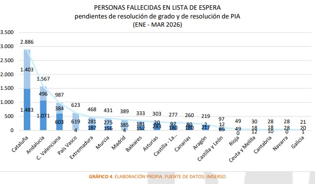 Entre enero y marzo de 2026, fallecieron 8.996 personas mientras esperaban respuesta del sistema de dependencia. Esto equivale a una media de 100 personas al día, o una cada 14 minutos.